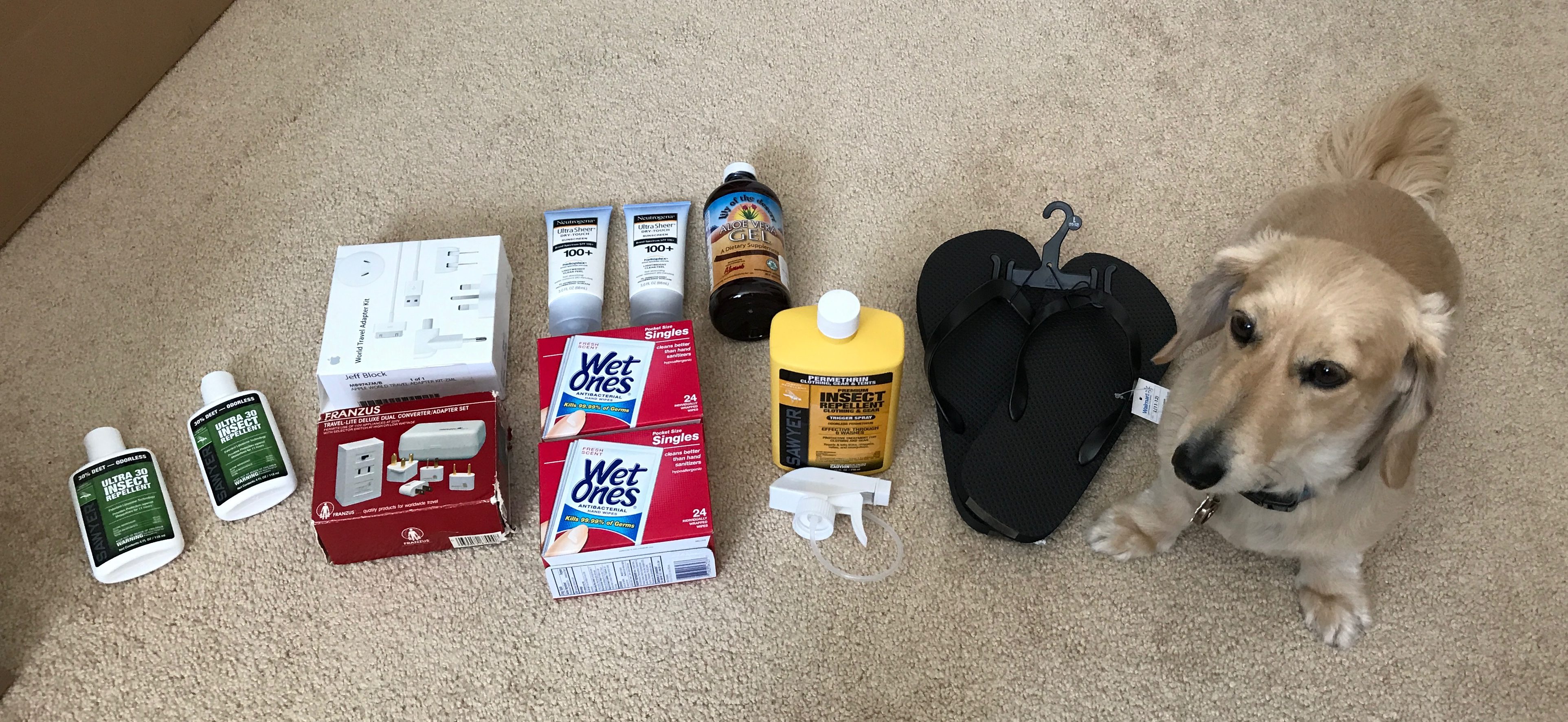 - Insect repellant – Both for me (Sawyer lotion) and for my cloths (Permethrin spray, also from Sawyer), which we’ll spray on everything before we leave — I’ll definitely let you know how this stuff and the sunscreen work
