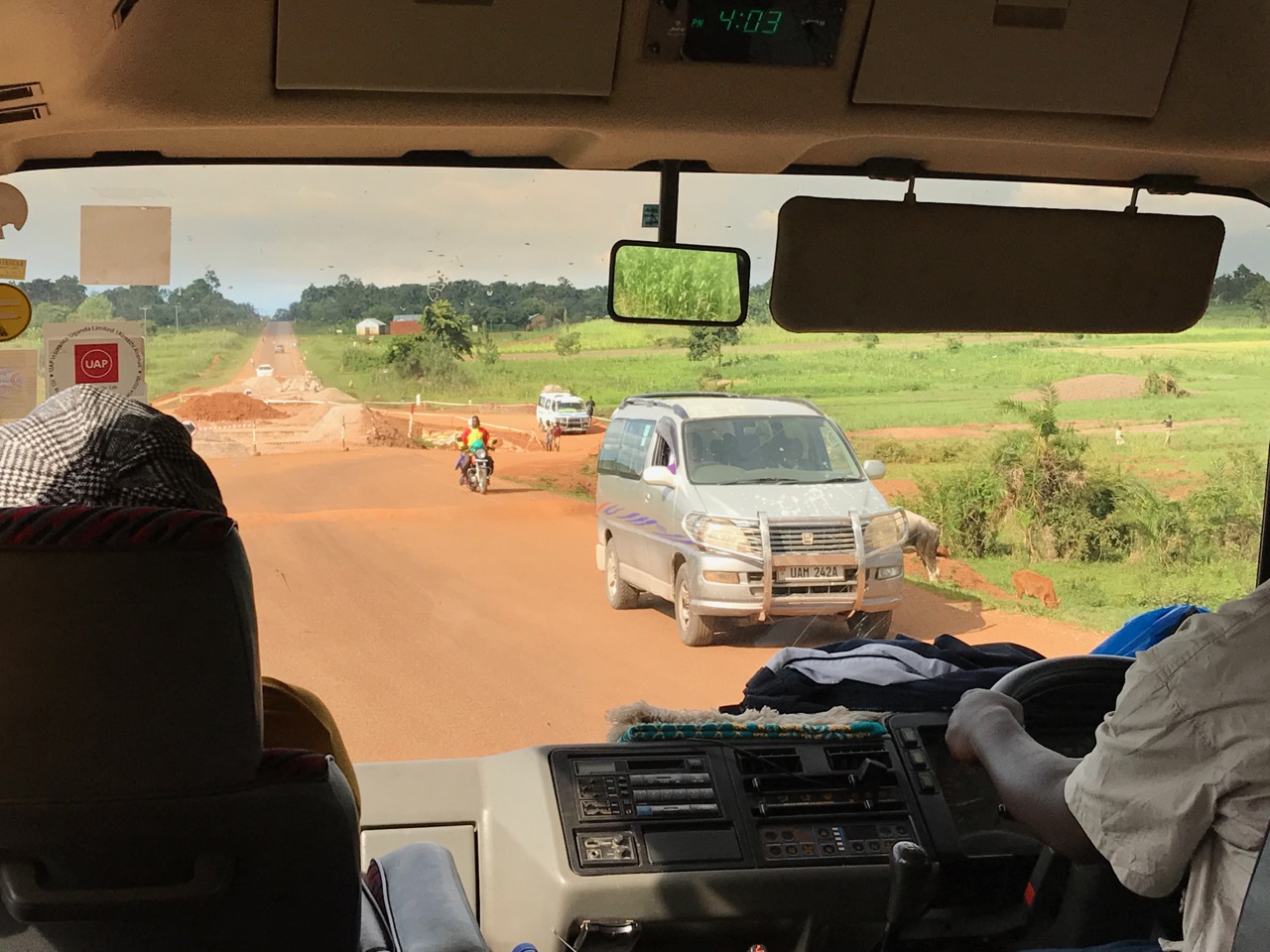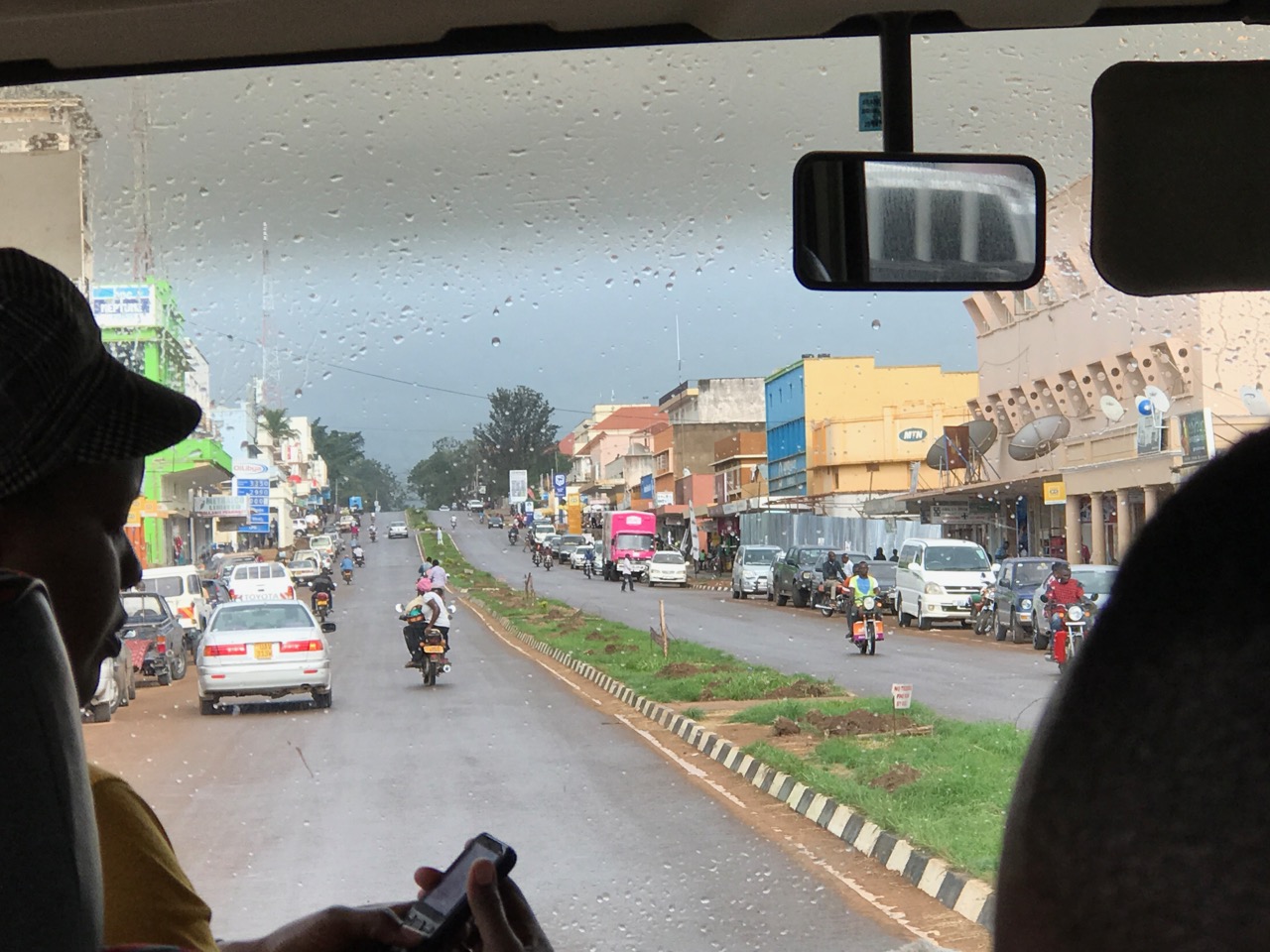 We left campus pretty much on-time (around 10am) to drive east. The traffic was absolutely crazy, and the roads were very challenging. Mostly unpaved. Potholes everywhere. I took a few pictures to try to give you an idea of what it’s like to drive in Uganda.