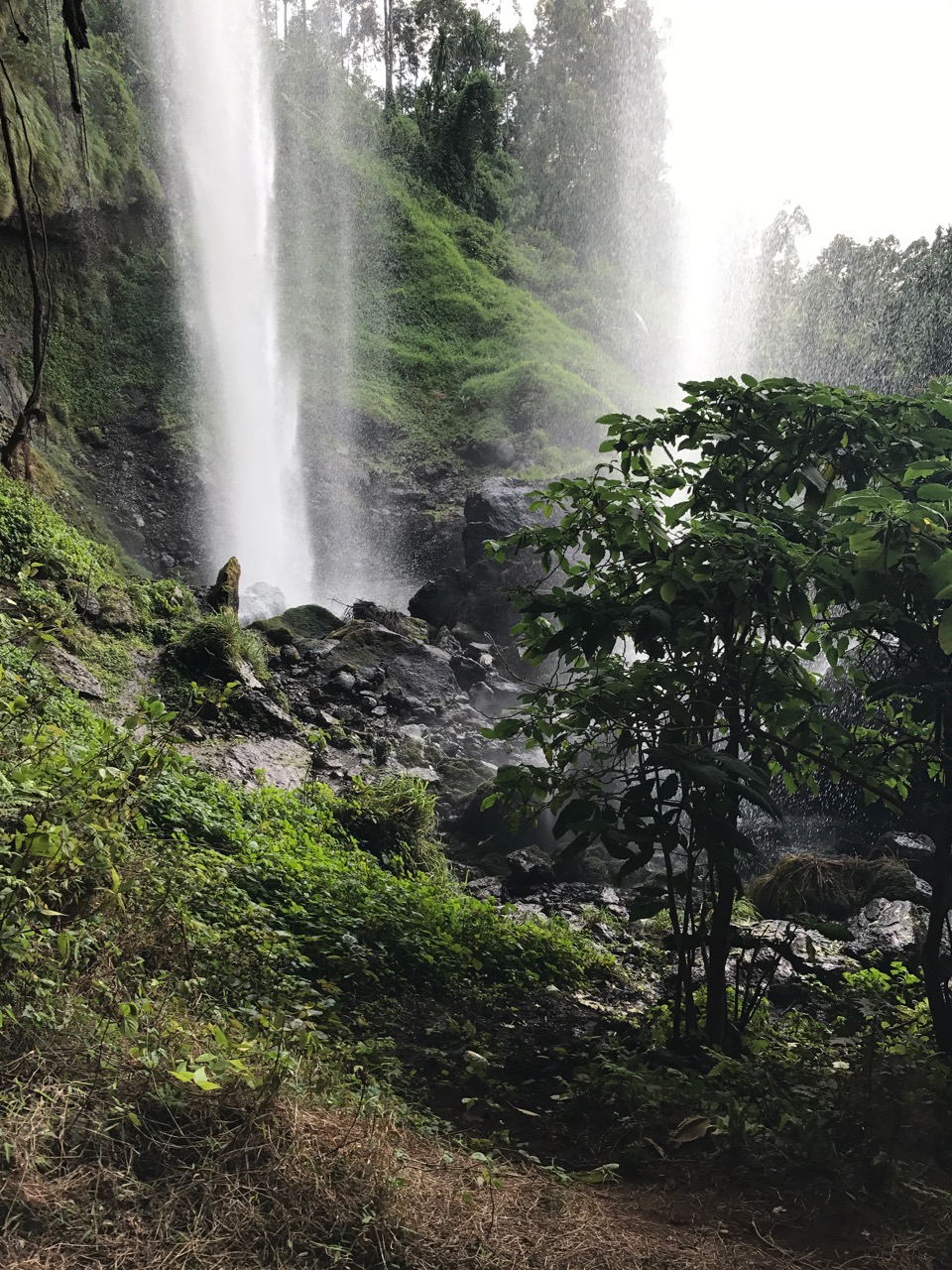 After a very bumpy hour-or-so drive up, we arrived at a resort / lodge which the launching place for hikes of various levels of difficulty up into the mountains to see the waterfalls. We chose to be driven up to the top, and hike back down past three falls. We hiked for about 2 hours, through mountainside farms. It was extremely beautiful and very interesting.