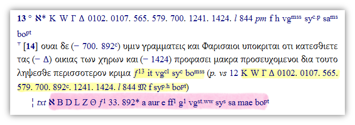 - References to key manuscripts, such as ℵ or 𝔐 or 𝔓 (you’ll use a better than this)