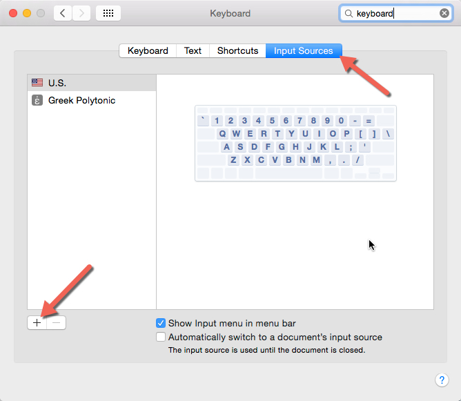 Add the Hebrew Keyboard: To create my own Hebrew text on the Mac, you need a “keyboard” to do so. This is an internal piece of software, not a physical thing you type on. It configures your Mac so that when you strike a key on your physical keyboard, it displays a ג (Hebrew) or a δ (Greek), instead of a “d” (English).